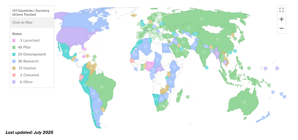 - ↑ Atlantic Council, 'Central Bank Digital Currency Tracker', available at https://www.atlanticcouncil.org/cbdctracker/.