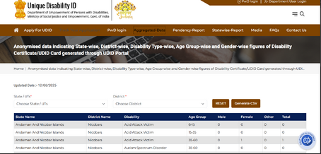 Managed by: Ministry of Social Justice and Empowerment (MoSJE), Government of India. The UDID project establishes a centralized, web-based system for issuing Unique Disability ID cards and maintaining disability-related data. The term “disability” is defined per the Rights of Persons with Disabilities Act, 2016, and is tracked through multiple variables including type, severity, and cause.