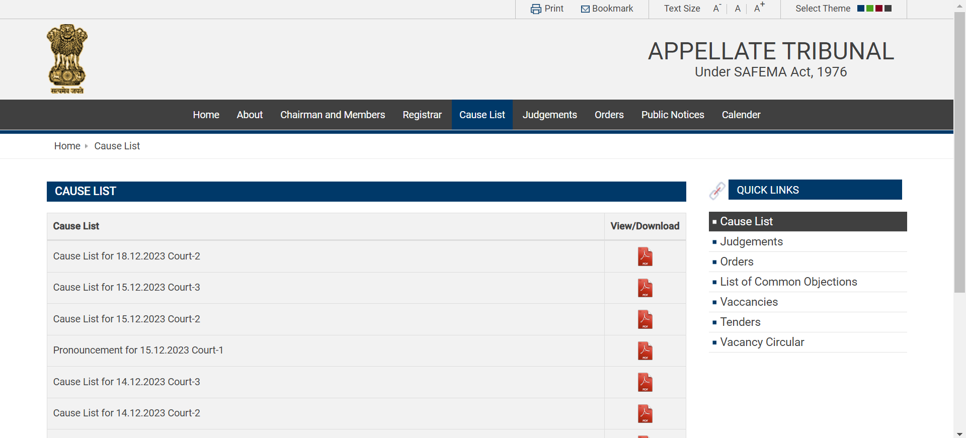 Cause list of Appellate Tribunal displayed on their website