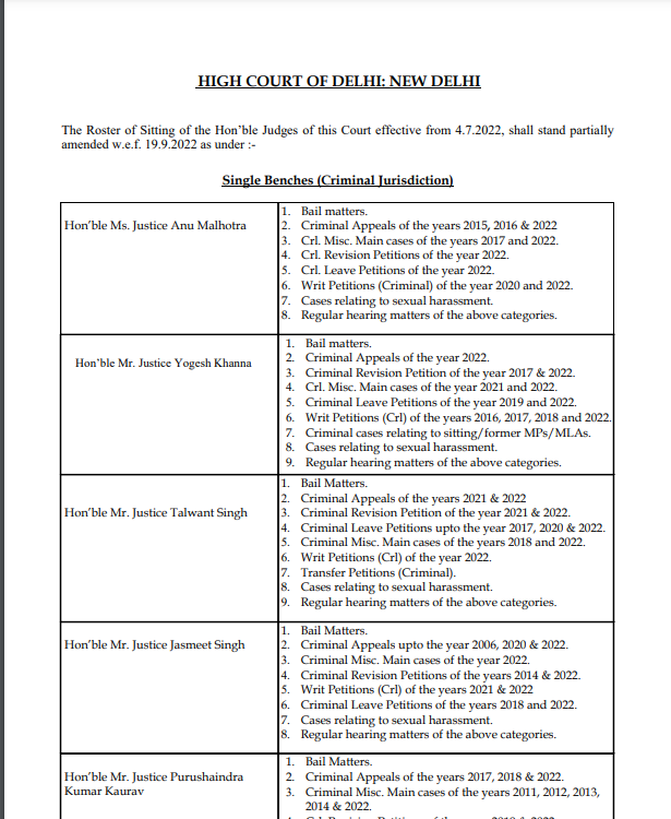 The notification mentions the classification of judges in different Benches.