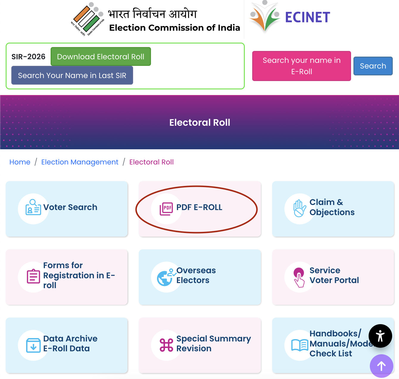 On the home page, select "PDF E-ROLL".