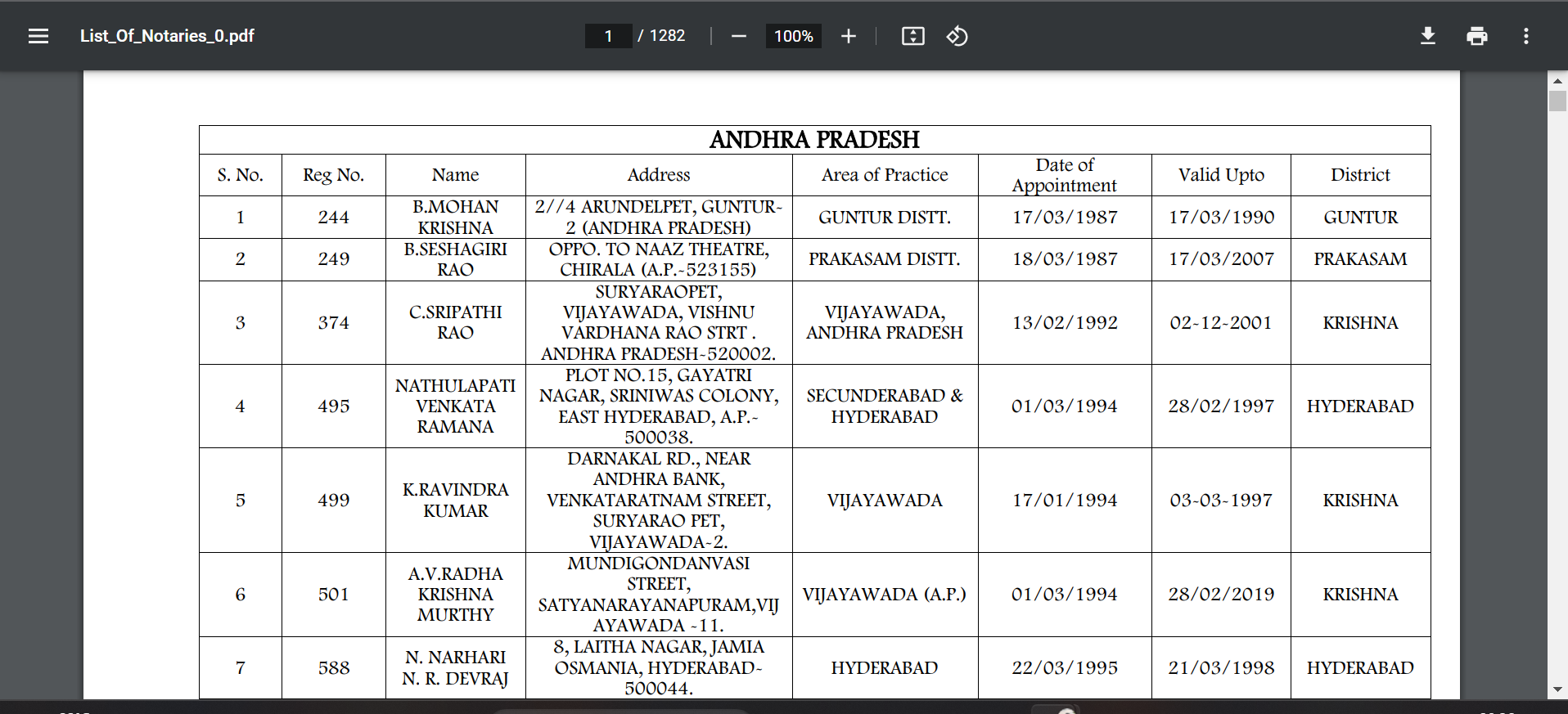 Screenshot of the list of notaries from each state and their relevant details uploaded by the Ministry of Law and Justice on its website.