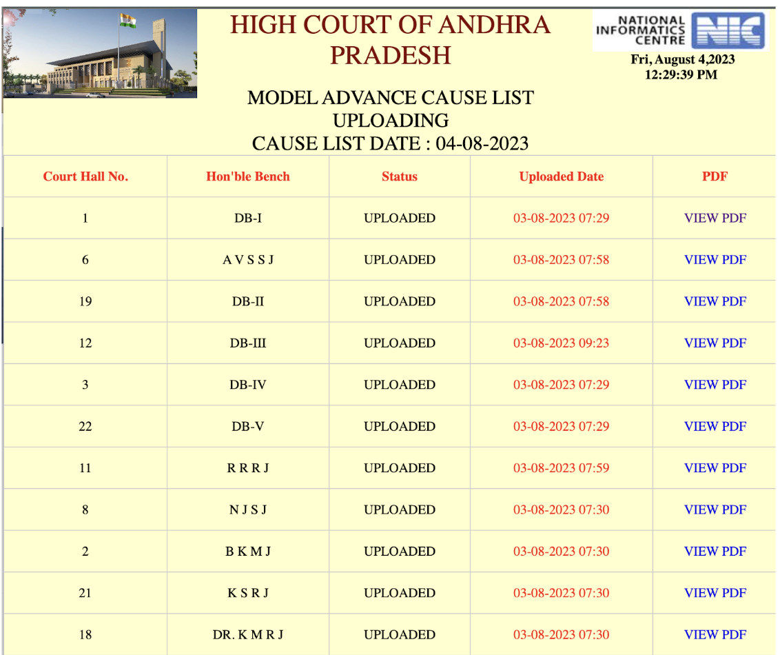 Advanced Cause List in High Court of Andhra Pradesh (Live Status)